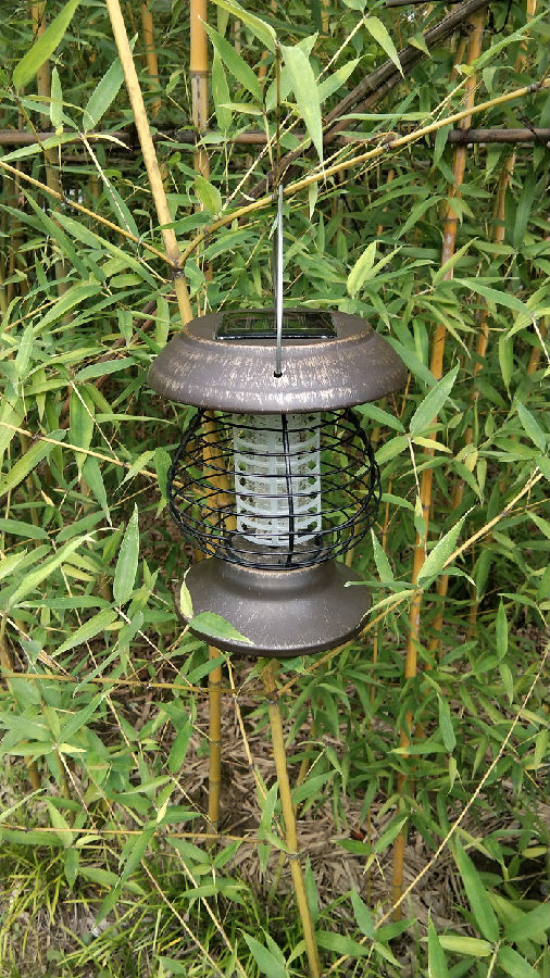 Solar powered killer lamp with tempting blue LED, 800V to kill insects like mosquitoes. Just hang up, beautiful, and be there kill little flies for you.